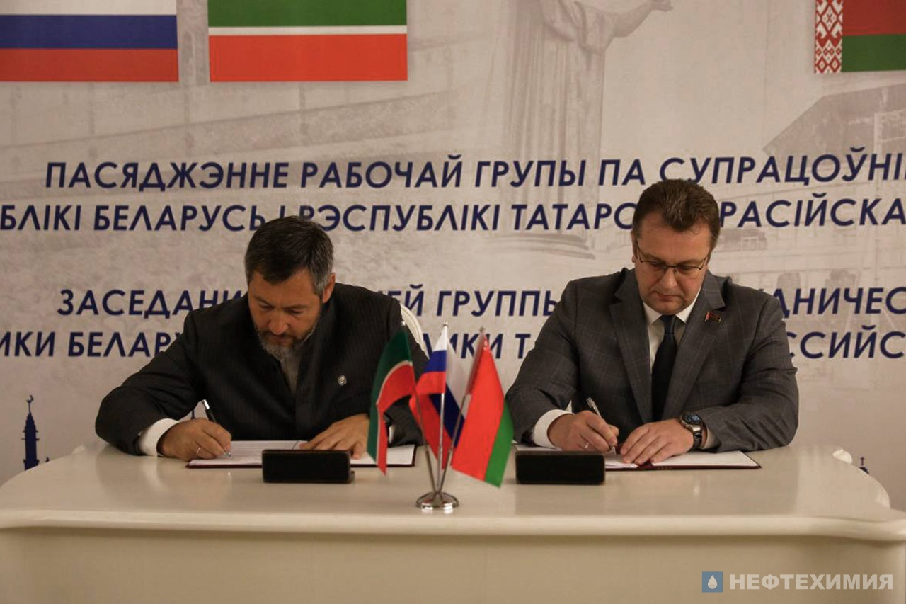В рамках встречи протокол совместного заседания рабочей группы по сотрудничеству между предприятиями и организациями нефтехимических комплексов Беларуси и Татарстана подписали председатель концерна «Белнефтехим» Илья Икан и заместитель Премьер-министра — министр промышленности и торговли Республики Татарстан Олег Коробченко.