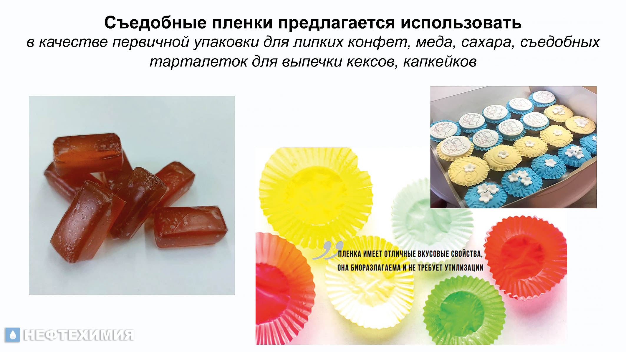Наши технологии содержат ноу-хау и получат защиту в виде евразийских патентов. Мы полагаем, что новая продукция будет востребована не только внутри страны, но и на внешних рынках, например в Индии, Вьетнаме. Ведь съедобные пленки — это идеальная безотходная первичная упаковка для липких конфет, меда, сахара, съедобных тарталеток для выпечки, а также порционная упаковка для какао, кофе, чая, круп, спортивного питания, специй и т.д.