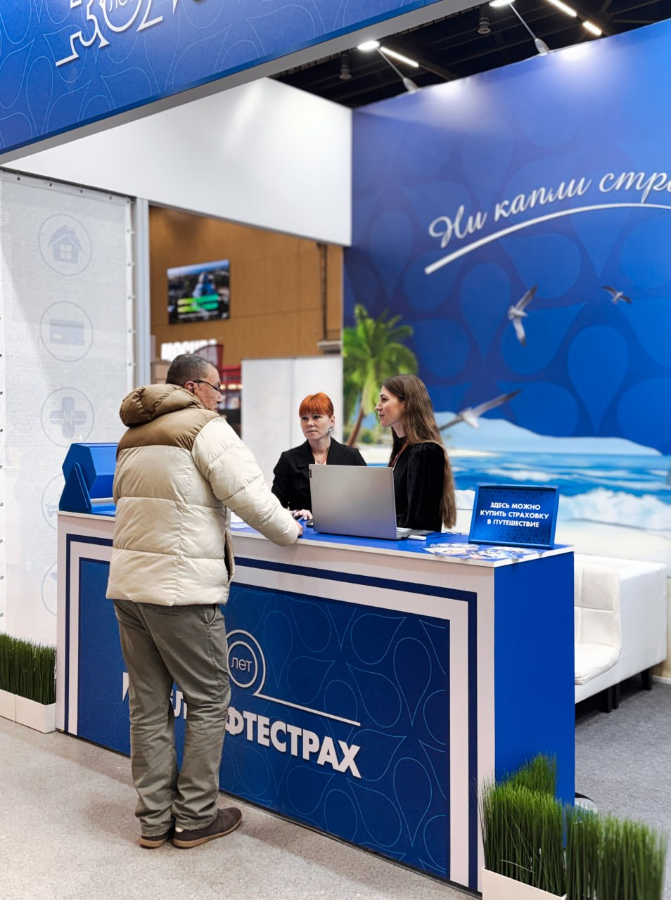 На стенде компании можно получить консультацию по любым видам страхования, задать вопросы специалистам, а также заключить договор страхования от несчастных случаев и болезней на время поездки за границу.