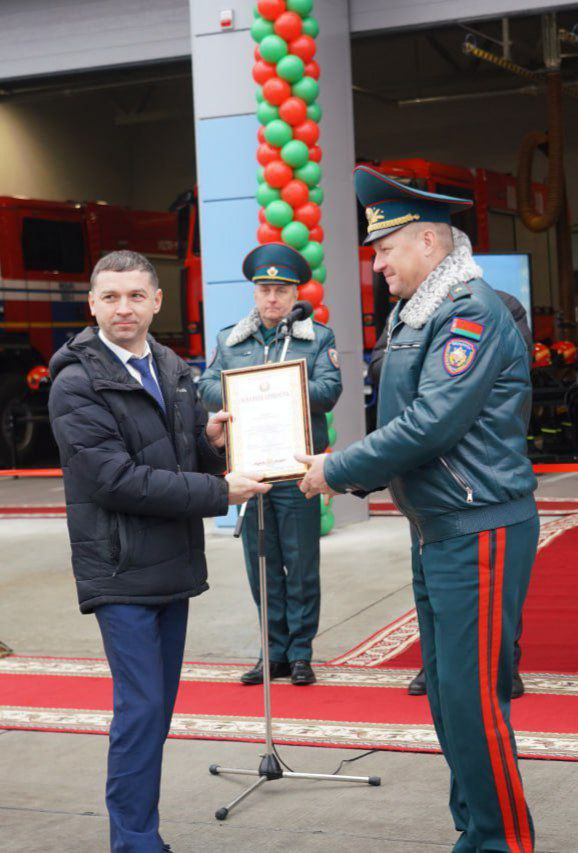 Благодарность министра по чрезвычайным ситуациям объявлена Валерию Ильюку, заместителю директора дирекции по реконструкции и развитию, а также представителю генерального подрядчика — заместителю директора ООО «Никова» Глебу Ковалеву.