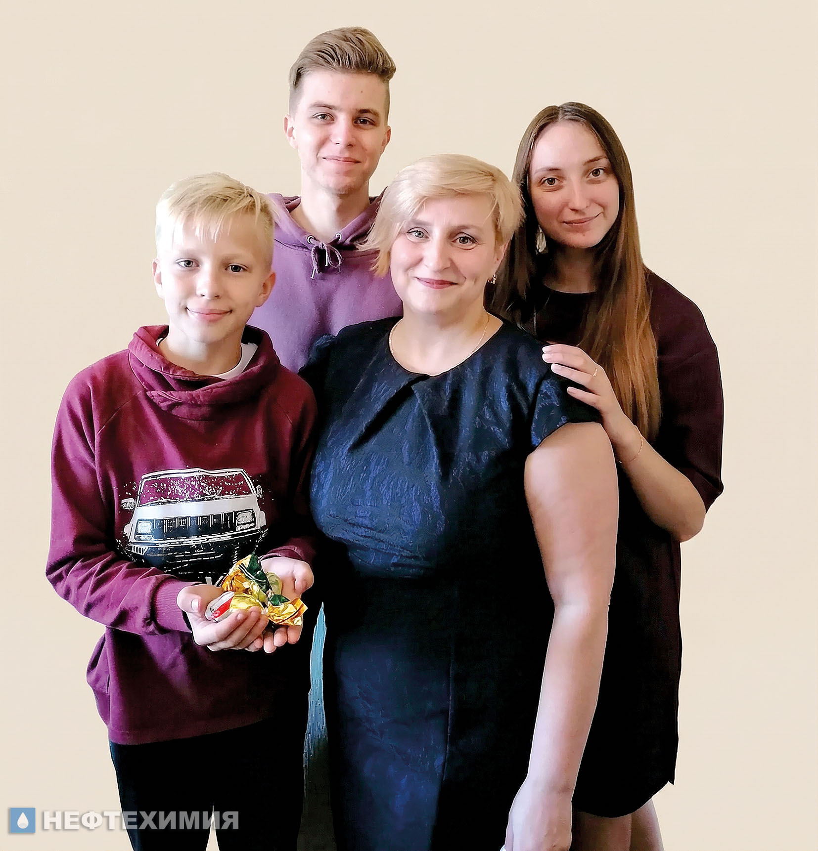 Счастливая мама Ольга Закревская с сыновьями Романом и Дмитрием, дочерью Надеждой. Новополоцк, 2020 год