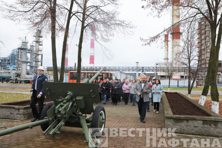 Также российская делегация посетила мемориал воинам-освободителям деревни Троицкое, расположенный на территории предприятия. Председатель профкома ОАО «Нафтан» Игорь Батурин познакомил гостей с историей этого места. Профактивисты почтили память павших минутой молчания и возложили цветы к подножию мемориала.