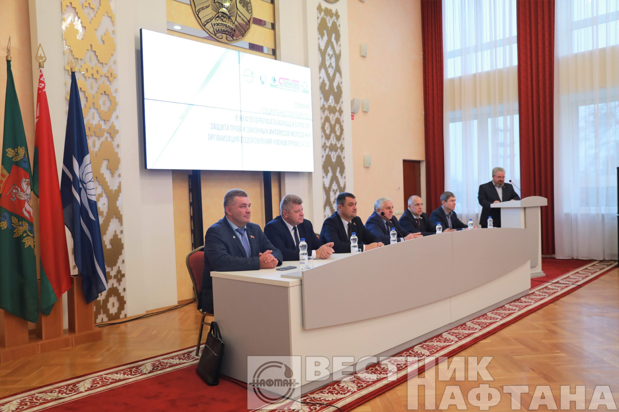 В ведомственном Дворце культуры прошел семинар на тему «Социальное партнерство нефтеперерабатывающей отрасли. Защита прав и законных интересов молодежи. Организация оздоровления членов профсоюза». В диалоге участвовали заместитель генерального директора ОАО «Нафтан» по идеологической работе и социальному развитию Сергей Евтушик и заместитель директора завода «Полимир» Сергей Брикун.