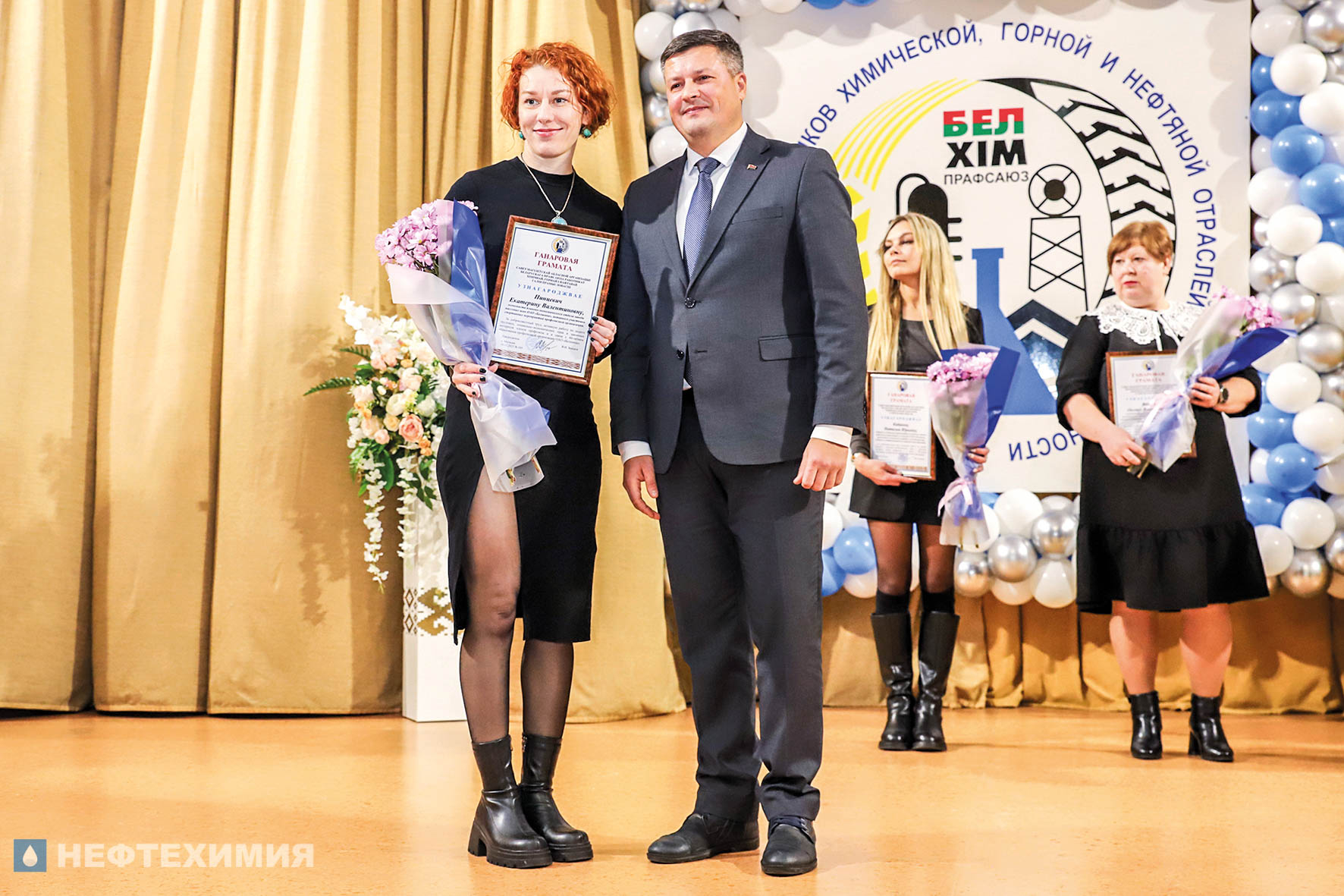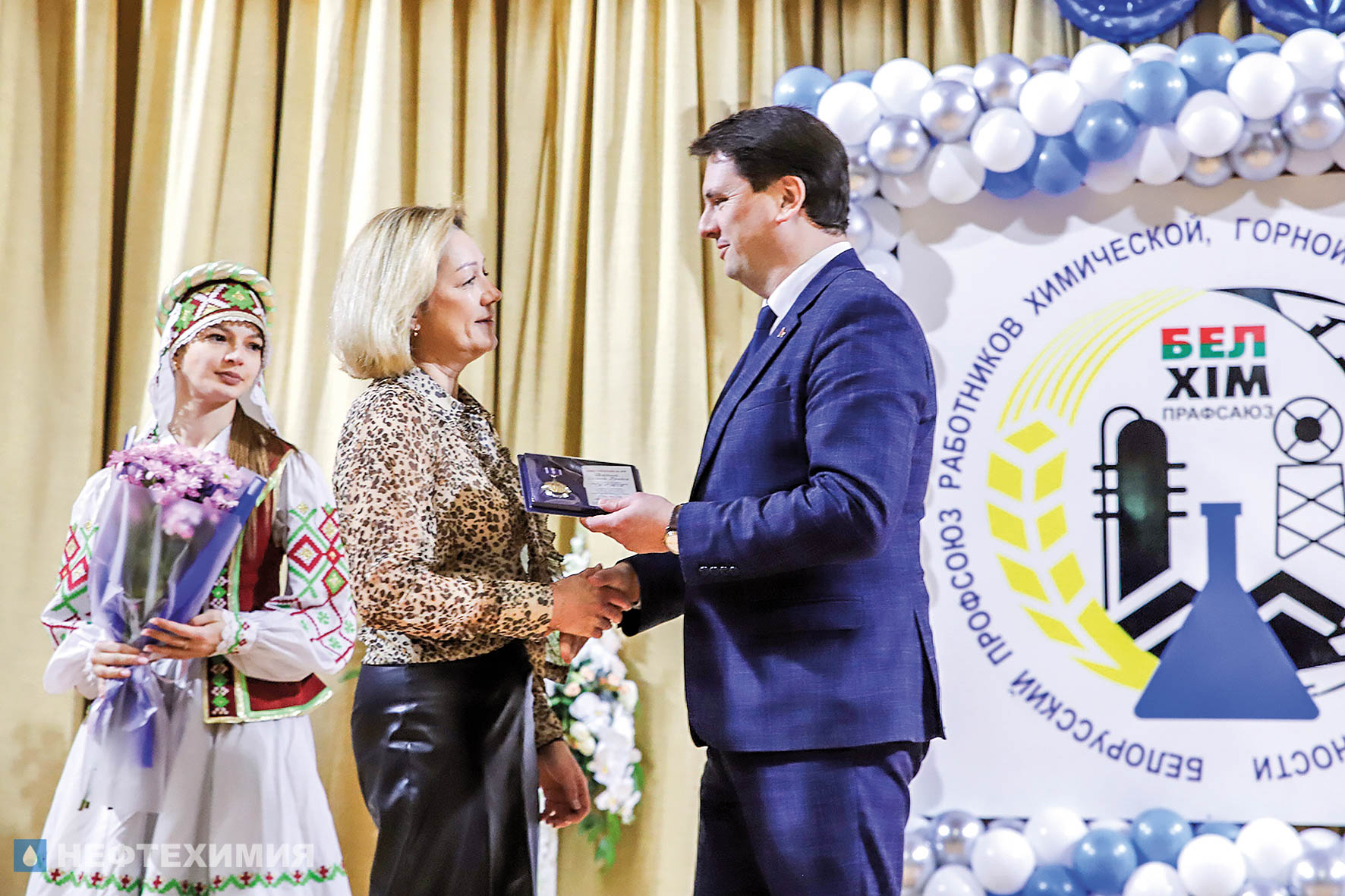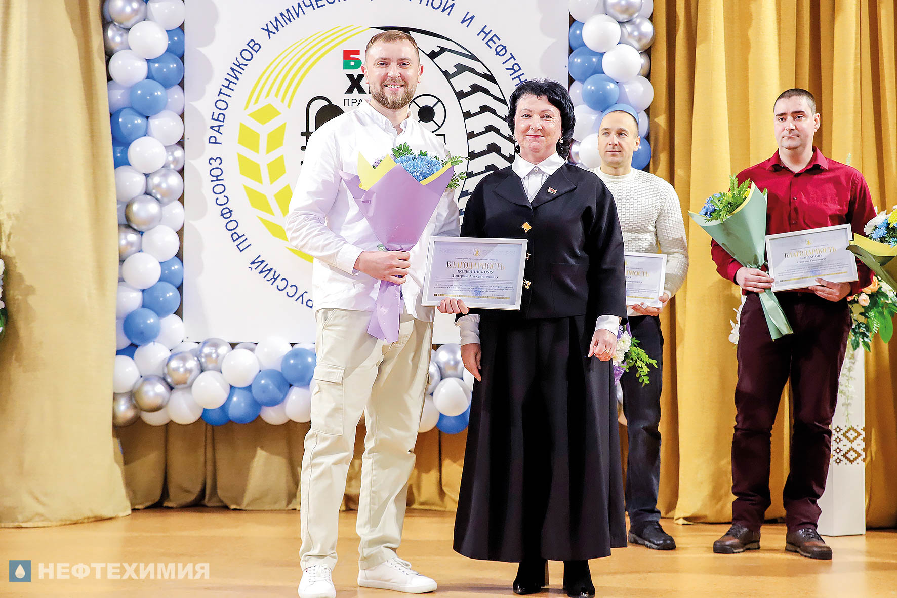 О преемственности поколений и сохранении традиций говорили и почетные гости торжества. Приветственный адрес от председателя Белхимпрофсоюза Андрея Жука зачитал его заместитель Сергей Стром и вручил Почетный диплом профсоюзной организации «Белшины», а Почетный знак РК Белхимпрофсоюза «За заслуги перед профсоюзом» — специалисту по организационной работе и документообеспечению профкома предприятия Оксане Печериной.