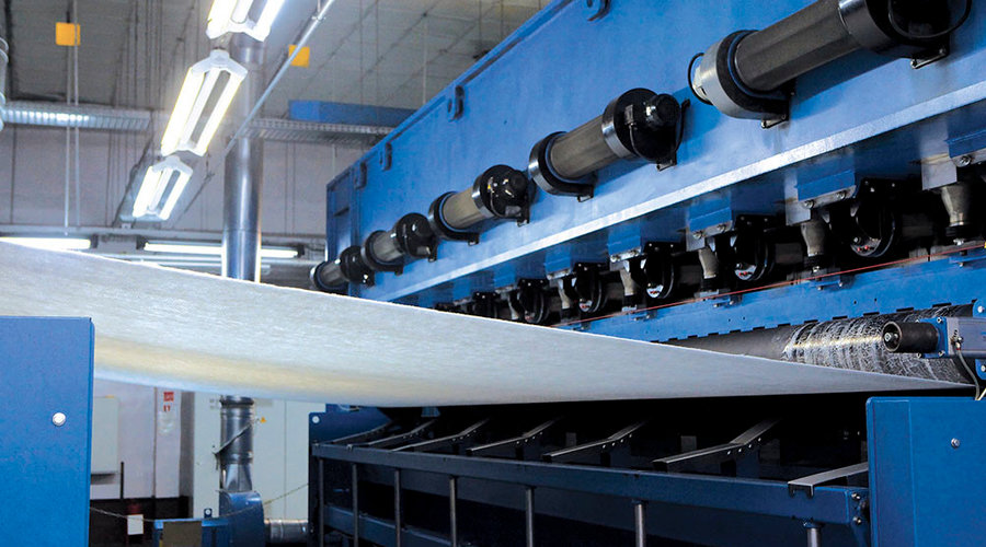 — В цехе нетканых полотен производства синтетического волокна ОАО «Могилевхимволокно» выпускается полиэфирная продукция различного назначения. В том числе полиэфирные полотна, используемые для основ битумных наплавляемых кровельных материалов, линолеумов, тафтинговых и ковровых покрытий, геотекстилей, а также фильтровальные полотна, — рассказывает Игорь Бубнов.