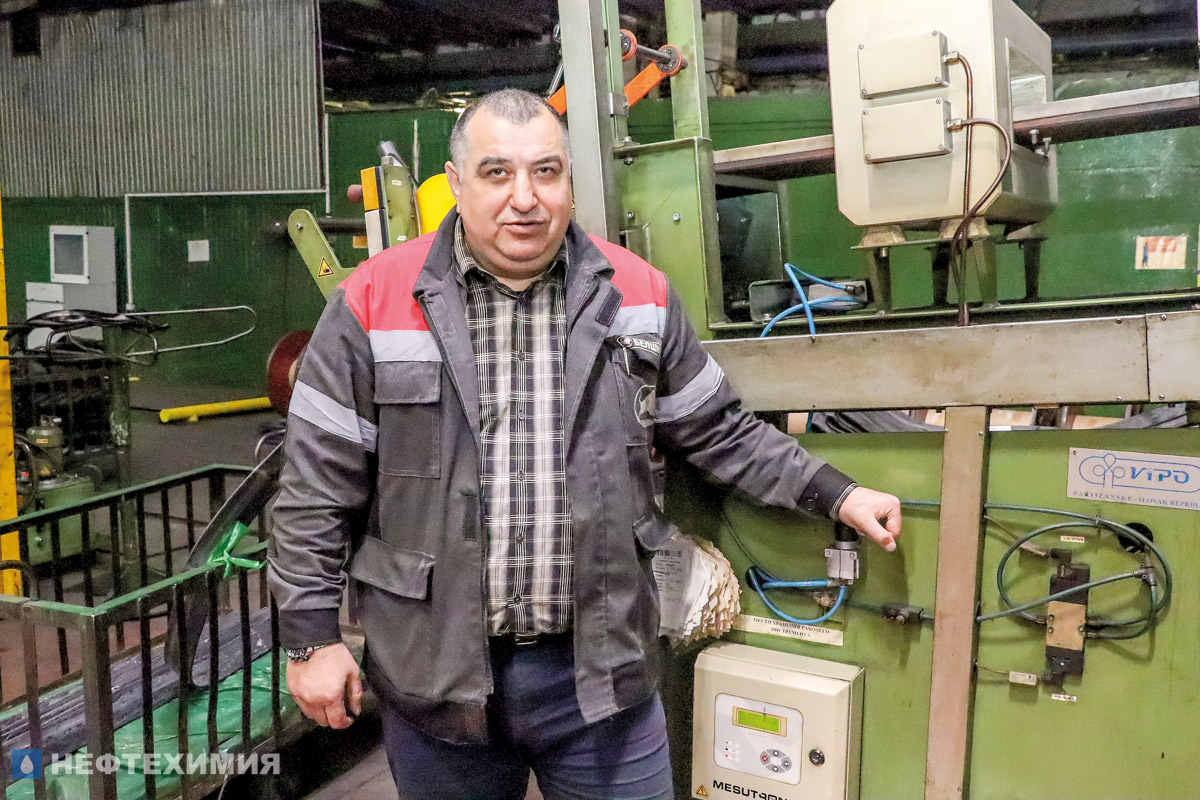 Параллельно на той же производственной площадке завода крупногабаритных шин слесари цеха контрольно-измерительных приборов и автоматики Александр Жлобич, Евгений Шарепо и начальник участка Александр Богомазов вдохнули «цифровую» жизнь в камерную линию ШМ-250. Они заменили изношенное механическое устройство старого образца универсальным счетчиком СИ30, что позволило автоматизировать мерный рез заготовок с ювелирной точностью и практически ликвидировать появление брака.